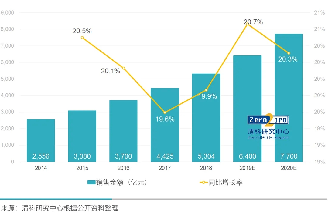 随着医疗器械政策情形一连改善,,,,国产自主立异器械一直问世,,,,资笔弃力行业加速吞并重组,,,,中国医疗器械市场规模一连增添。。。。。。。2014-2018年,,,,中国医疗器械市场规模从2556亿元一连增添至5304亿元,,,,五年间市场规模扩大了一倍,,,,年均增添率约20.0%,,,,凭证20%的同比增添率估算,,,,预计2020年中国医疗器械市场规模将抵达7700亿元。。。。。。。