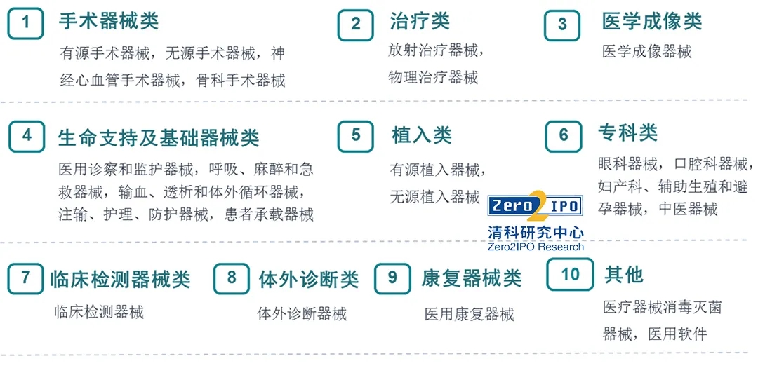 医疗器械,,,,是指直接或者间接用于人体的仪器、装备、用具、体外诊断试剂及校准物、质料以及其他类似或者相关的物品,,,,包括所需要的盘算机软件。。。。。。。连系原国家食药监总局《医疗器械分类目录》和医疗器械市场投融资特点,,,,本研究将医疗器械产品分为10个大类,,,,包括:手术器械类、治疗类、医学成像类、生命支持及基础器械类、植入类、专科类、体外诊断类、临床检测器械类、康复器械类等。。。。。。。