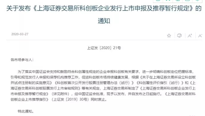 刚刚,,,上海证券生意所宣布《上海证券生意所科创板企业刊行上市申报及推荐暂行划定》。。。。。。。